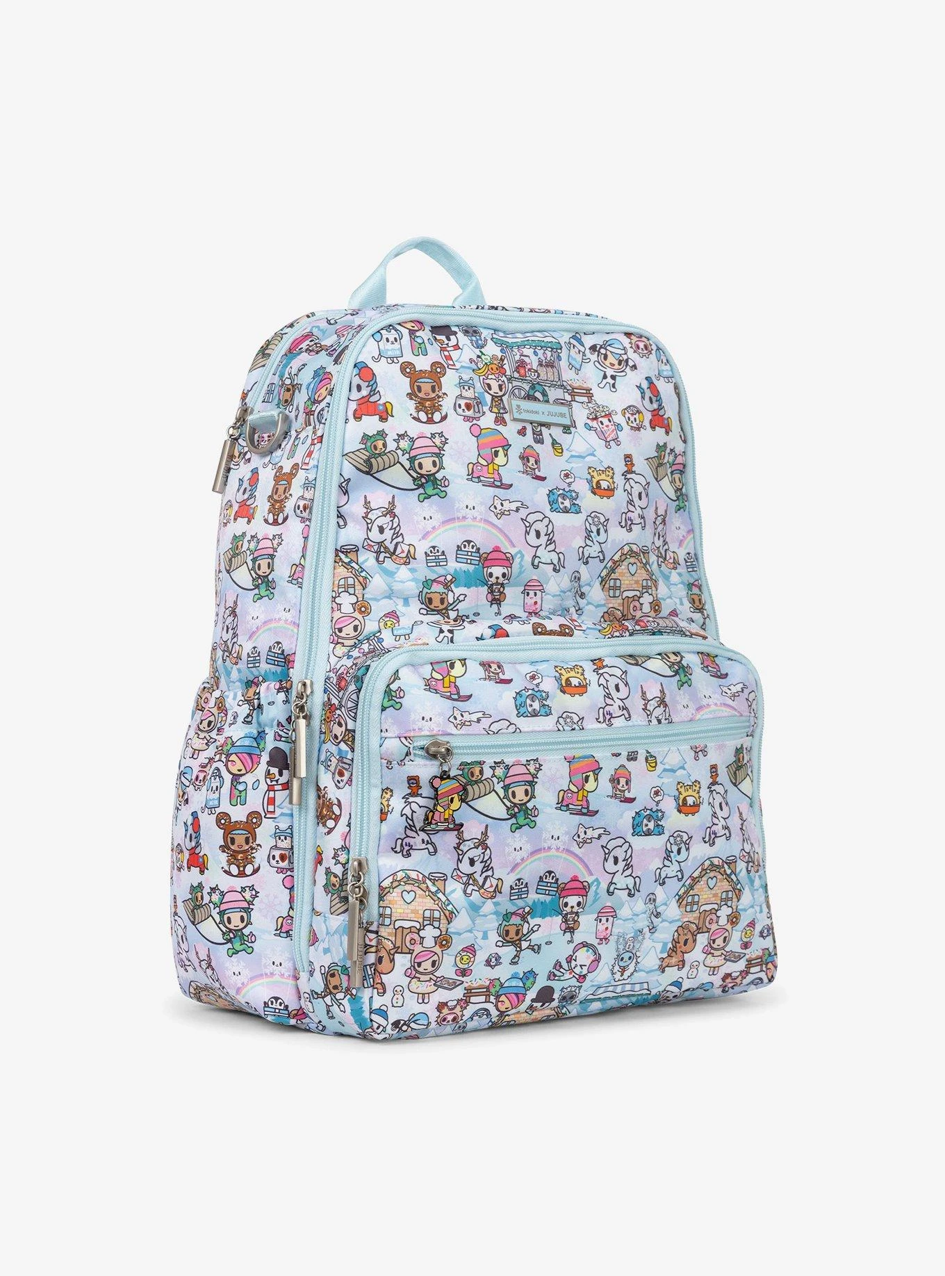- Pockets – 4 mesh pocket and 1 slip pocket in main compartment; 2 insulated bottle pockets; Cell phone pocket; Mommy pocket